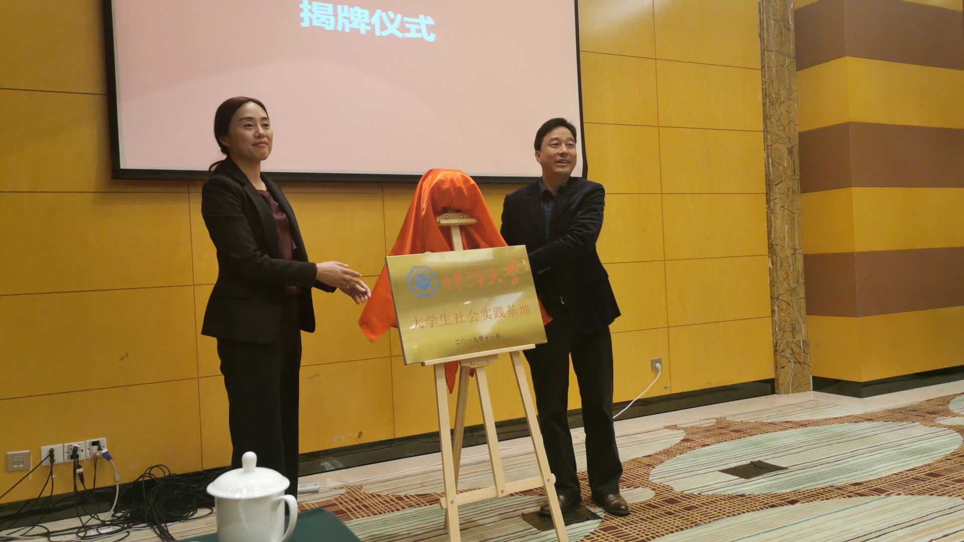 会上,河海大学计算机与信息学院还与宝塔路街道党工委举行了大学生实践基地揭牌仪式。