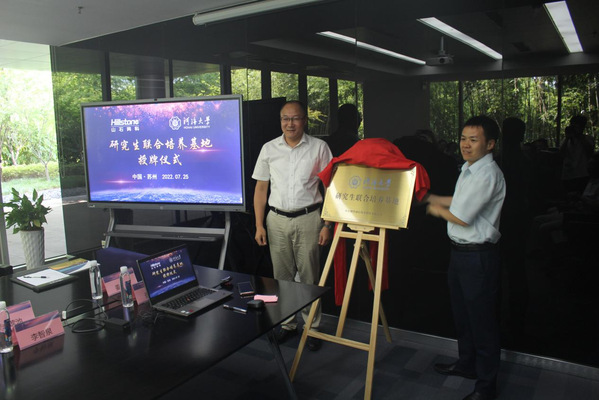 仪式上,河海大学党委研究生工作部副部长、研究生基地管理办公室主任杜世舰和山石网科研发副总经理杨启军共同为“研究生联合培养基地”揭牌;信息学部党委书记康红强和山石网科人力资源总监张霞共同为“江苏省研究生工作站”揭牌。双方对研究生联合培养基地、江苏省研究生工作站表达热烈的期待,该基地和工作站将充分利用双方优势资源,继续推进产学研深度融合,持续做好人才培养和科技创新工作。