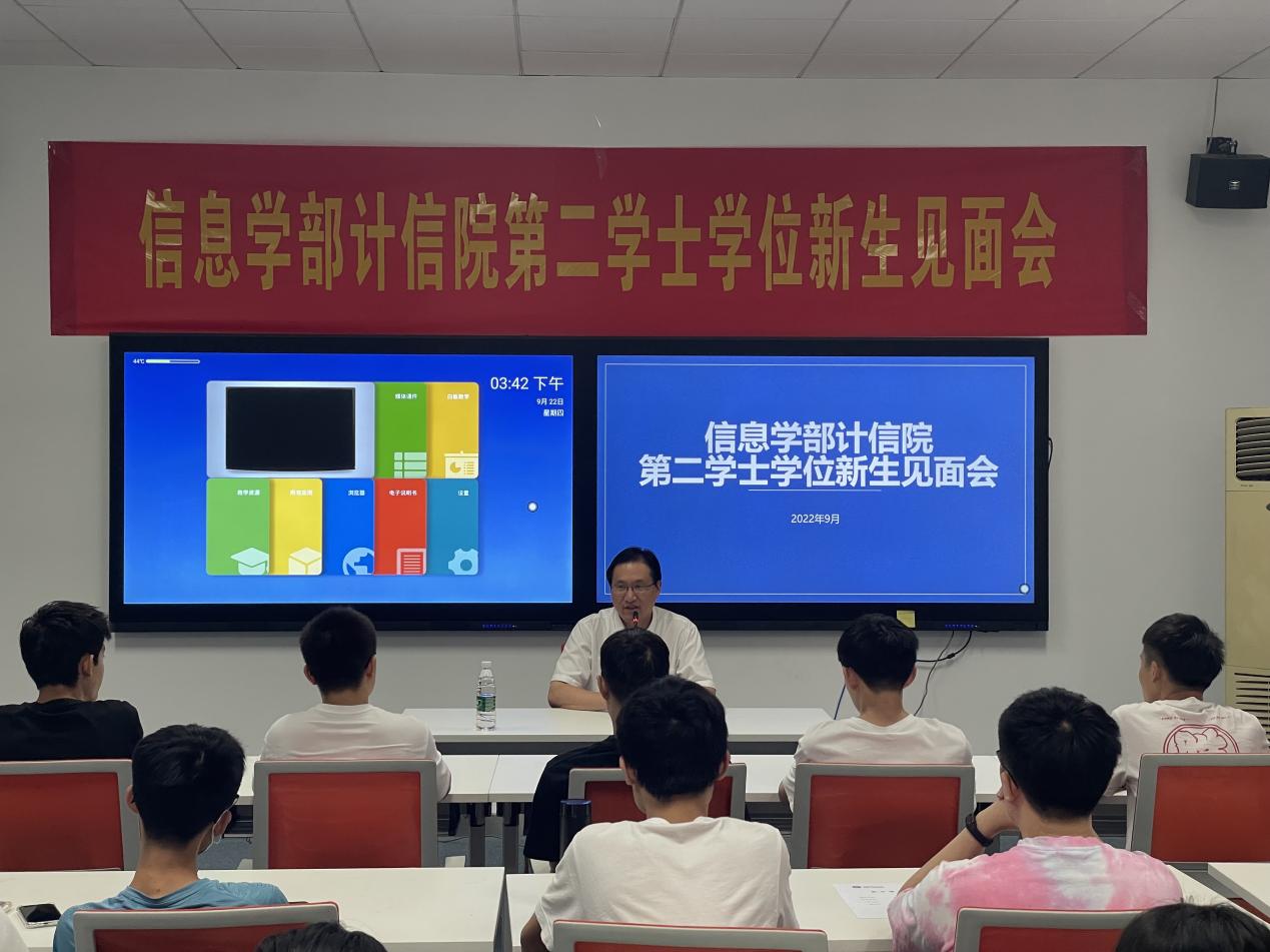 会上,胡院长和相关老师从学院的建设发展历程、人才培养特色、师资力量、科研方向等方面全面介绍了信息学部计算机与信息学院的基本情况,并阐释了对第二学位学生的培养目标、基本要求和期待。还就同学们关注的第二学位培养模式、课程计划和毕业要求、学生管理、在校生活等焦点问题做了解答。