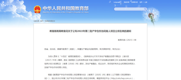 教育部高等教育司关于公布2022年第二批产学合作协同育人项目立项名单的通知://www.moe.gov.cn/s78/A08/tongzhi/202302/t20230207_1042628.html