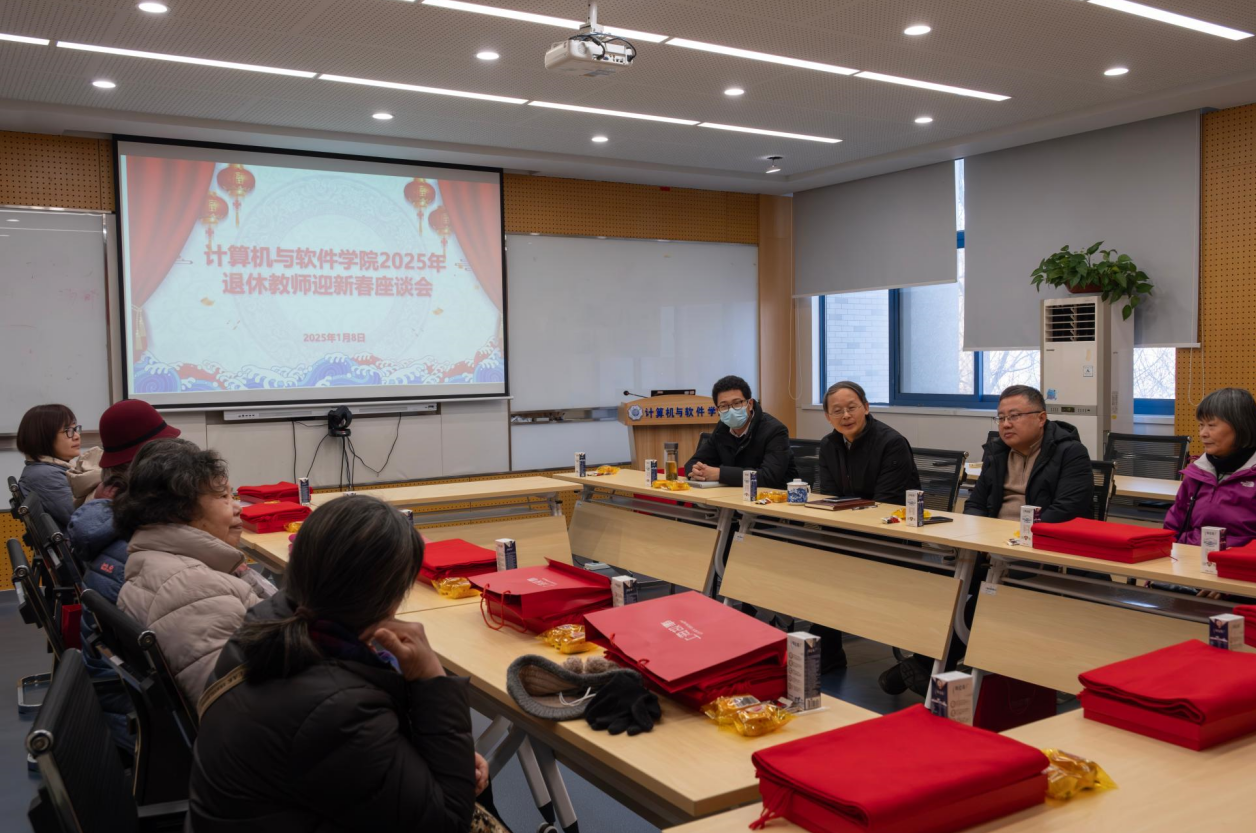 1月8日上午,学院召开了2025年退休教职工迎新春座谈会。学院14名退休教师、领导班子成员、系主任及学院教师代表参加了本次座谈会,会议由学院党委书记蒲晓东主持。