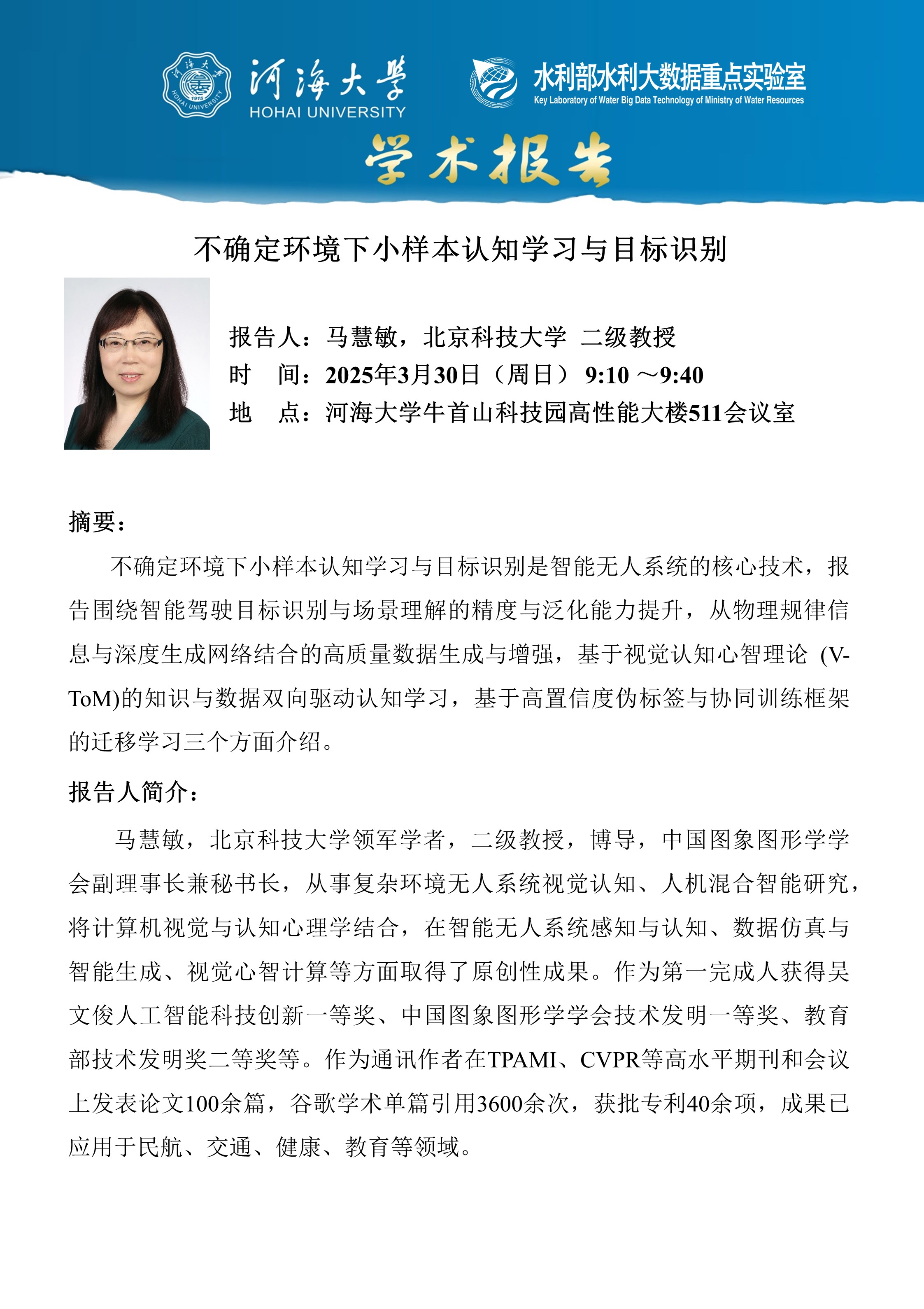 学术报告:不确定环境下小样本认知学习与目标识别