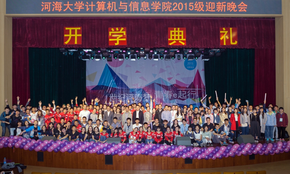 10月15日,我院举办2015级新生开学典礼暨“世纪河海梦 青春e起行”迎新晚会。我院许峰院长、党委张雪刚书记、张炜副书记、计算机系主任毛莺池老师、通信所所长谭国平老师、电信系副系主任鹿浩老师、学院05级校友代表、2015级本科生各班班导师、各年级辅导员及600余名本科生、研究生共同参加了开学典礼并观看了本次晚会。
