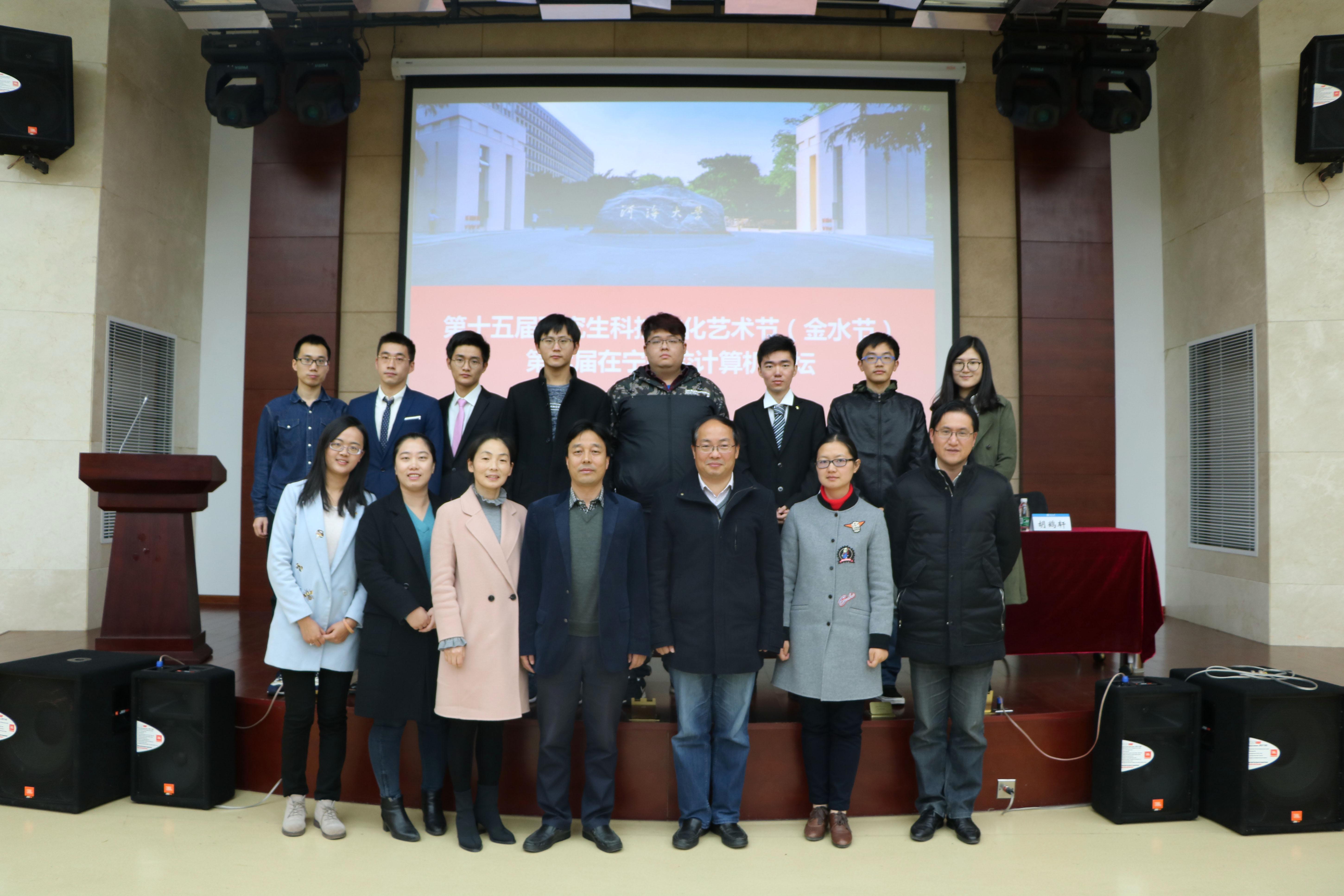 河海大学第十五届研究生科技文化艺术节(金水节)之第七届“在宁高校计算机论坛”开幕式于2017年11月21日14:00在江宁校区行政楼一楼多功能厅隆重举行。南京大学计算机科学与技术系副主任陶先平、河海大学计算机与信息学院党委书记张雪刚、河海大学校团委副书记戴媛媛、计算机与信息学院副院长毛莺池,副院长胡鹤轩,学院团委及其他相关教师出席了开幕式。南京大学、南京航空航天大学等兄弟学院研会主席应邀出席。