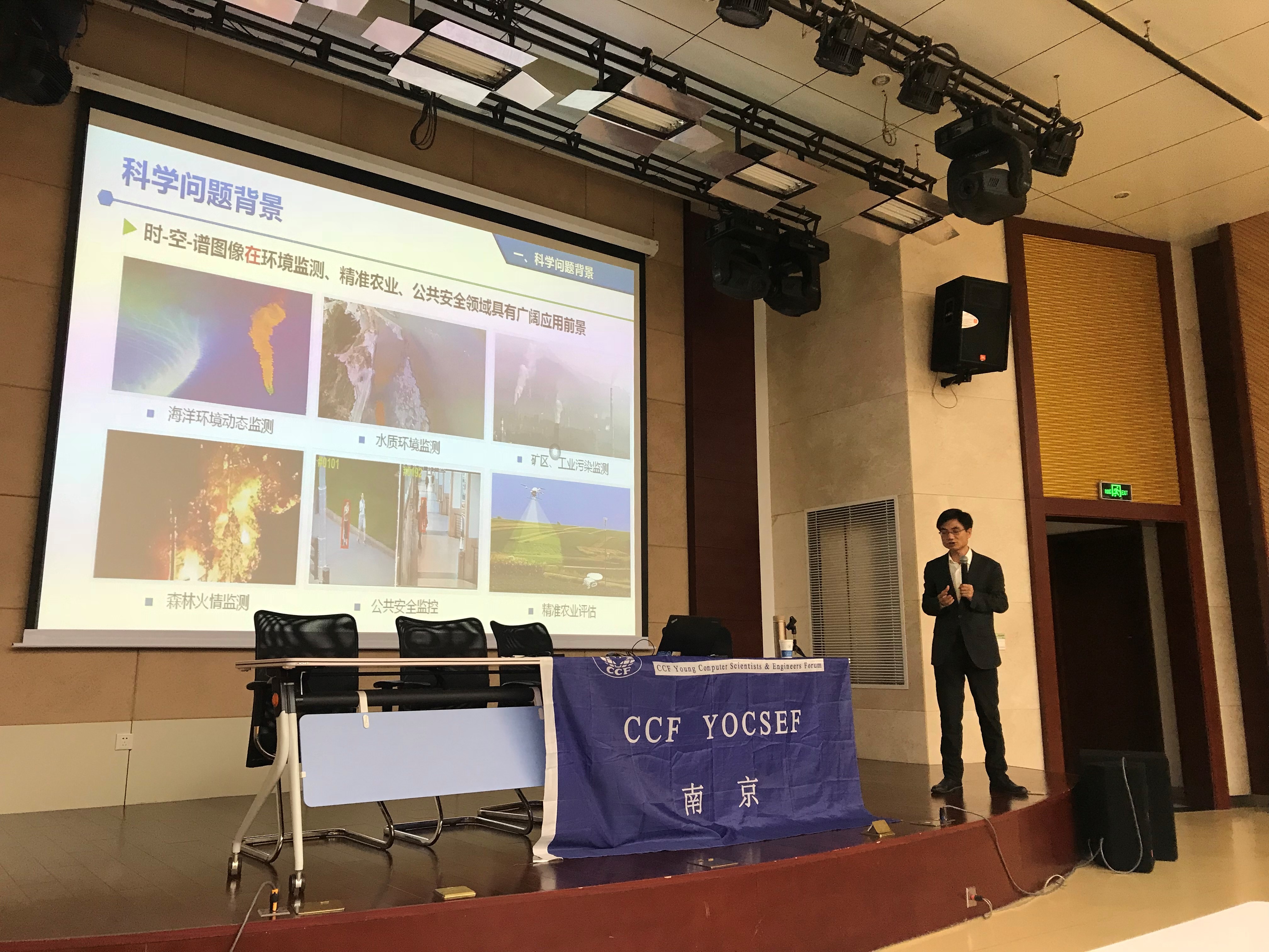 11月27日,CCF YOCSEF南京主席、CCF南京分部副主席、教育部高维信息智能感知与系统重点实验室副主任、江苏省光谱信息感知与系统重点实验室副主任、南京理工大学肖亮教授应邀到我院访问,并在行政楼多功能报告厅为我院师生做了题为“先进机器学习与图像分析算法的可复制和可视软件研究(从古诗词引用说起)”的学术报告,学院近百名师生参加了学术报告会。报告会由毛莺池副院长主持。
