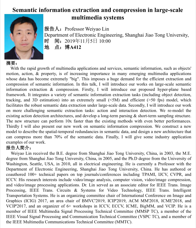 学术报告:Semantic information extraction and compression in large-scale multimedia systems