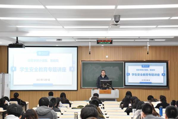 安全大于天,安全教育贯穿大学始终。12月1日,为提高师生安全意识,增强师生面对危险时的自我防范能力,信息学部计信院、智能院邀请保卫处副处长吴青山为师生开展安全知识教育。信息学部党委副书记刘春田主持讲座,各年级辅导员、班长、生活委员共同参加本次活动。
