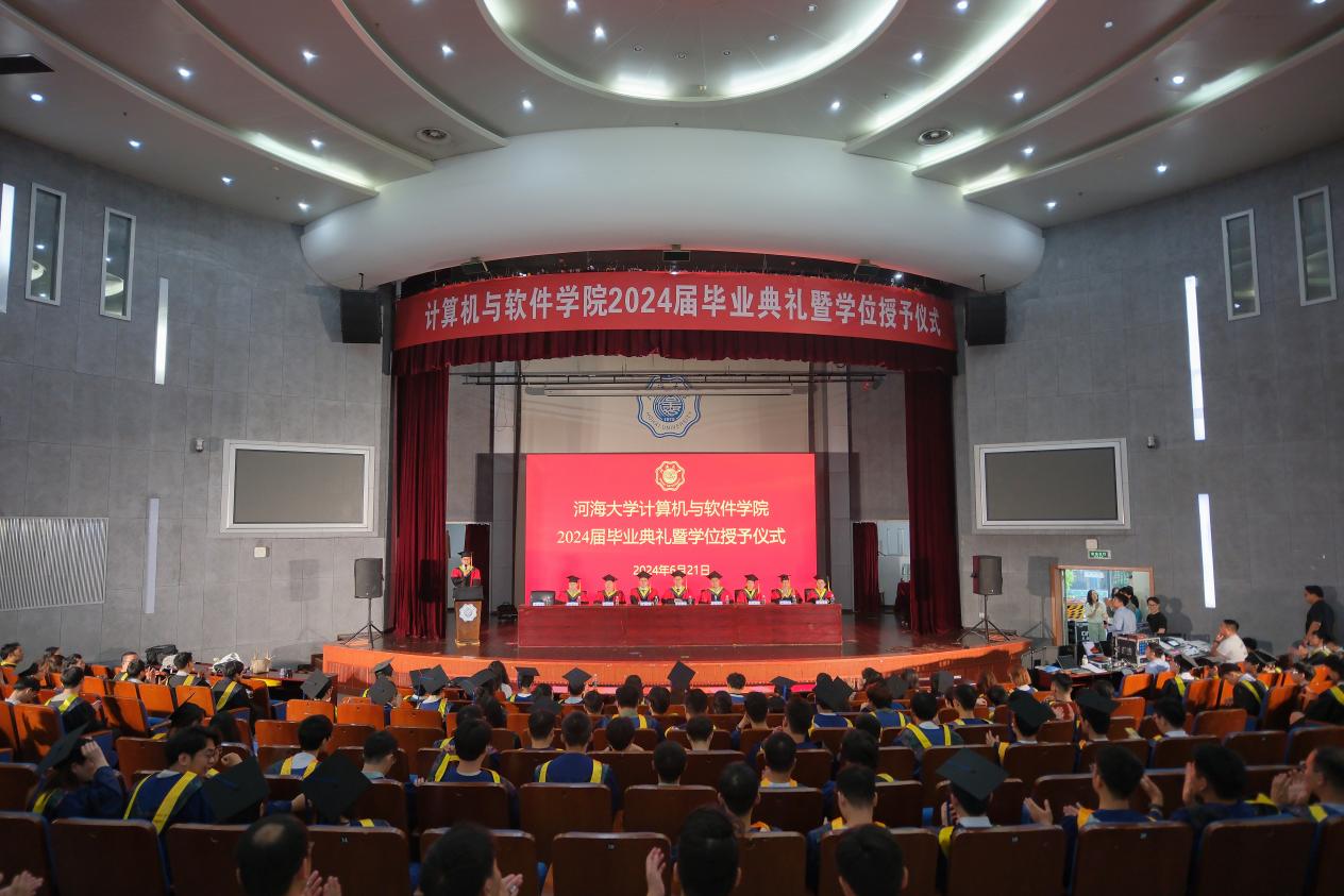 2024年6月21日,计算机与软件学院2024届毕业生毕业典礼在江宁校区隆重举行。学院党委书记蒲晓东、副院长张鹏程、副院长唐斌、教师代表、全体辅导员和家长代表出席,典礼由学院党委副书记张剑宇主持,学院2024届全体本科、研究生毕业生参加。