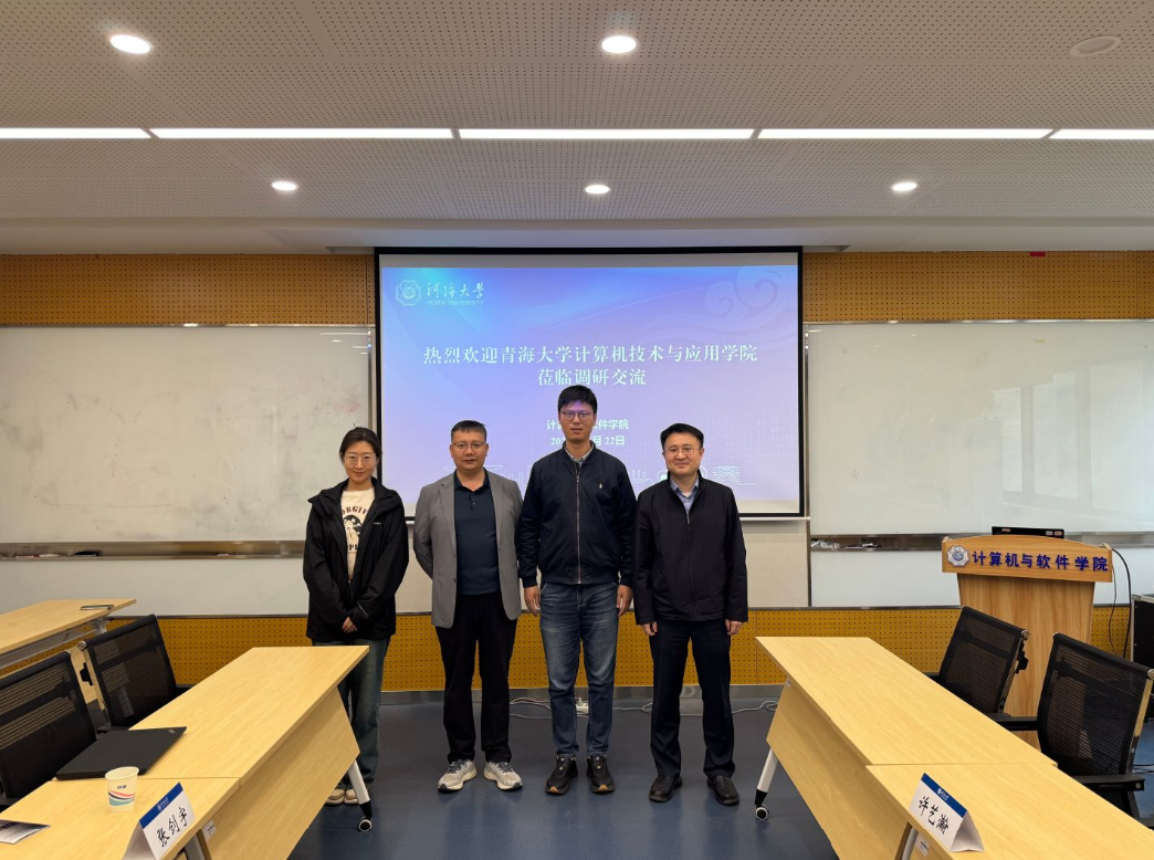 4月22日,青海大学计算机技术与应用学院副院长张玉安、许艺瀚赴我院开展调研交流,计算机与软件学院副院长刘凡、研究生辅导员郭馨逸参加座谈。